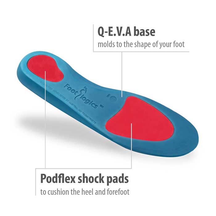 Footlogics PLANTAR FASCIITIS Orthotics are a Full-Length Insole featuring a cushioned heel and forefoot region, as well and arch support, making it suitable for people needing help with Plantar Fasciitis, Heel Pain, Heel Spurs and Achilles Tendinitis.